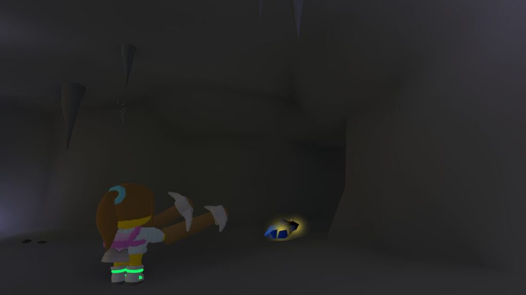サファイアを掘り進めて奥まで辿り着くと、特になにもない壁しかないように見えますが、ツルハシを喰らわせると壁を壊す事ができます。