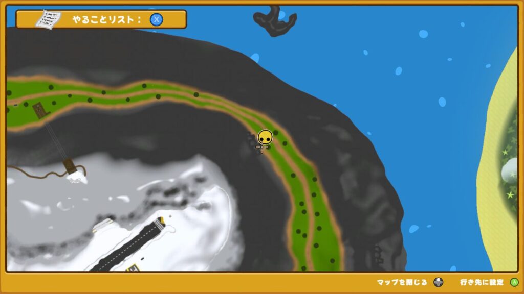 ジップラインがスクウェア状に張り巡らされており、中央には何やら穴のような物がある陸地が…。
