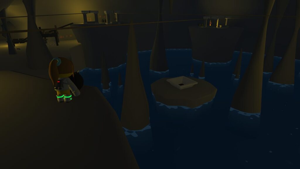 中央の穴にツルハシや松明などを投げ込んでみましたが、なにも起こらないというか、そもそも穴を通過していきませんでした。