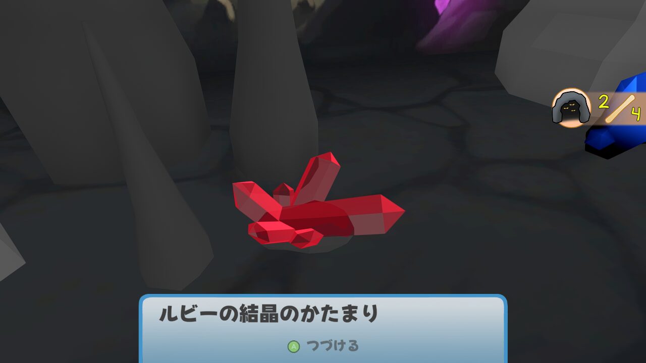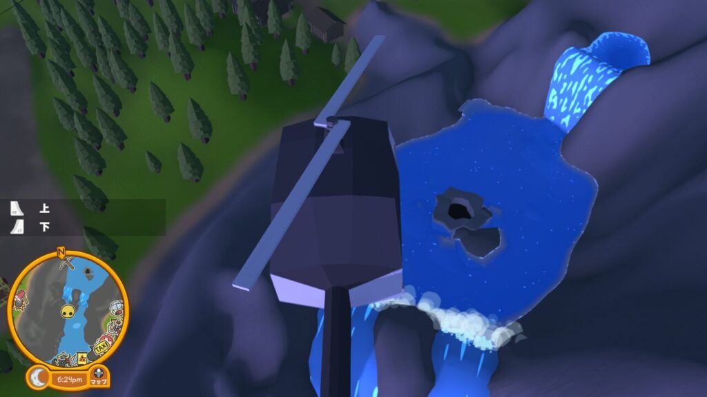 スイッチを押すと足場がせりあがってきて、3つ全てのスイッチを押すと橋になりますので、渡った先にあるカベをツルハシで破壊しましょう。
