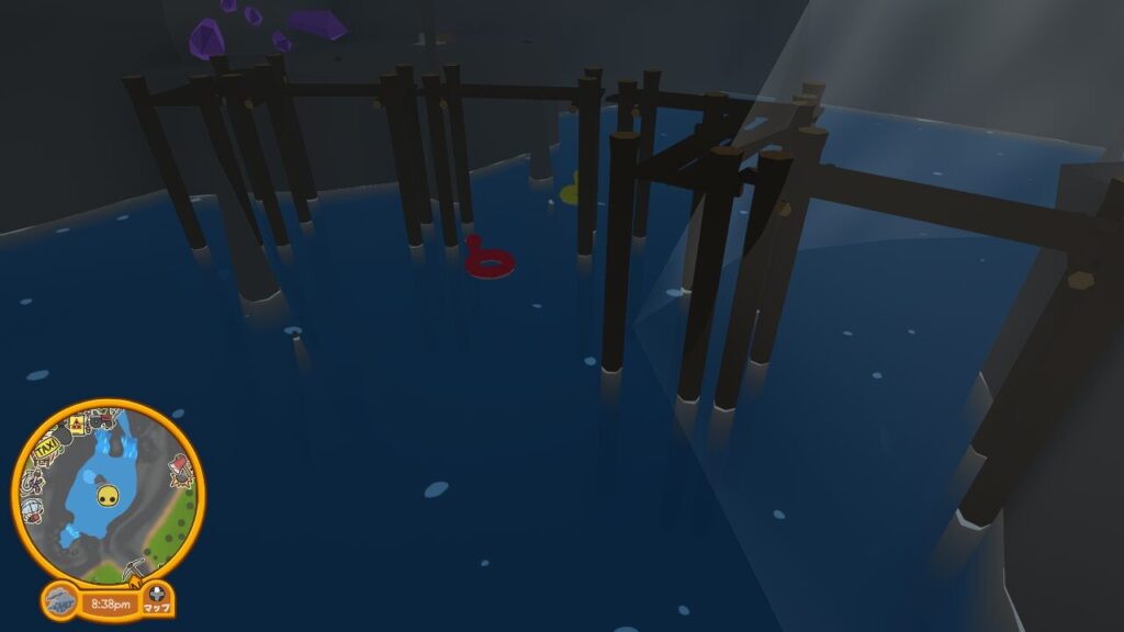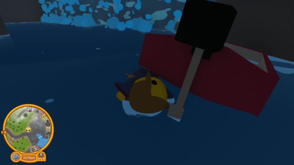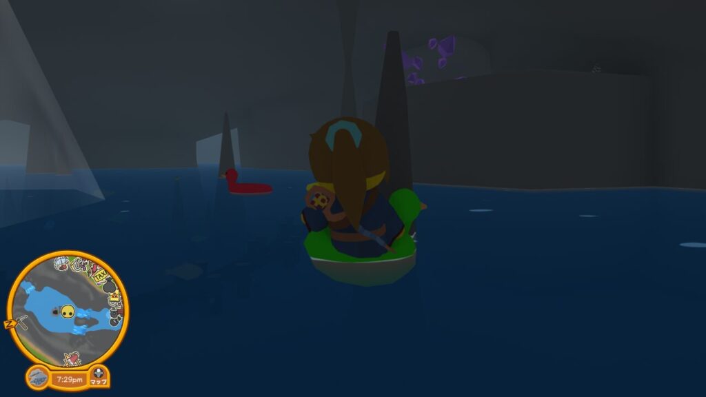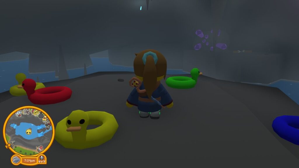アヒルの浮き輪に乗り水に沈まないようにしつつ、3つのスイッチを押す事を目指して洞窟を泳ぎ回ります。