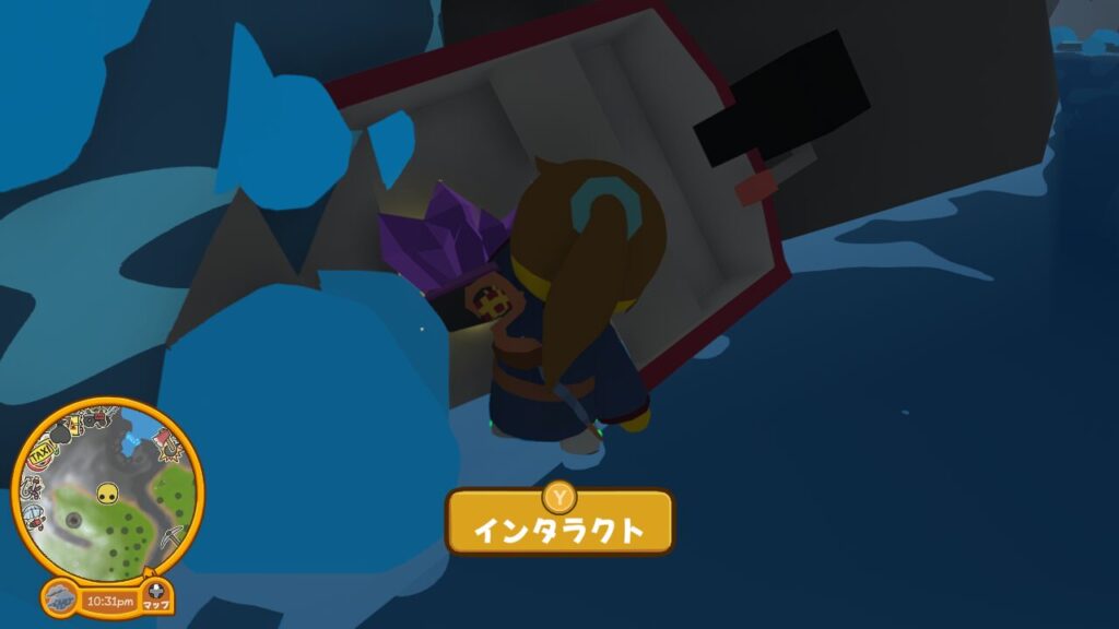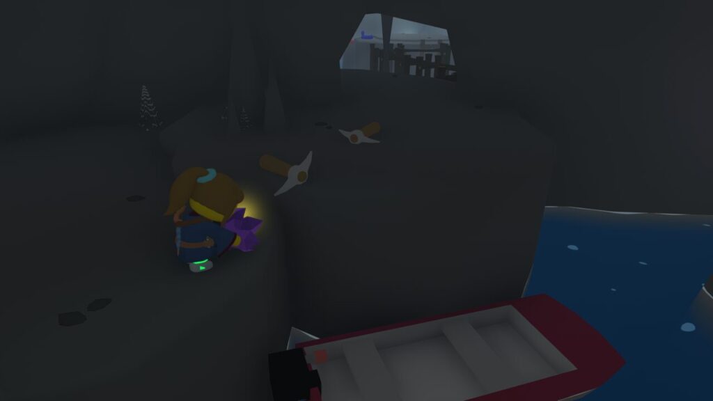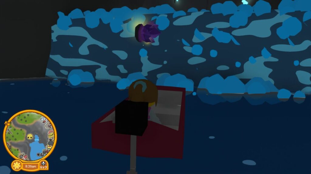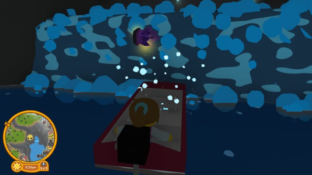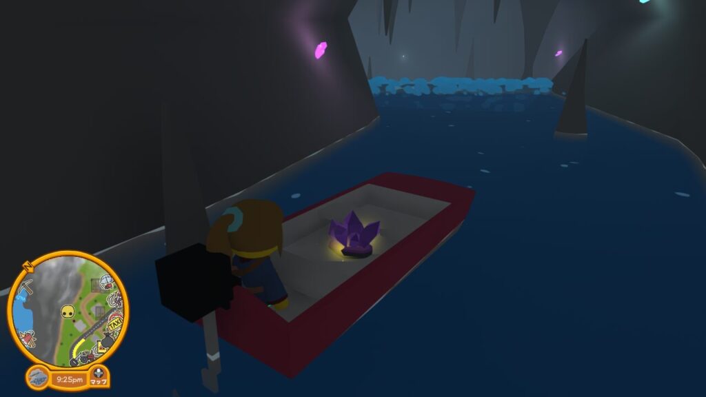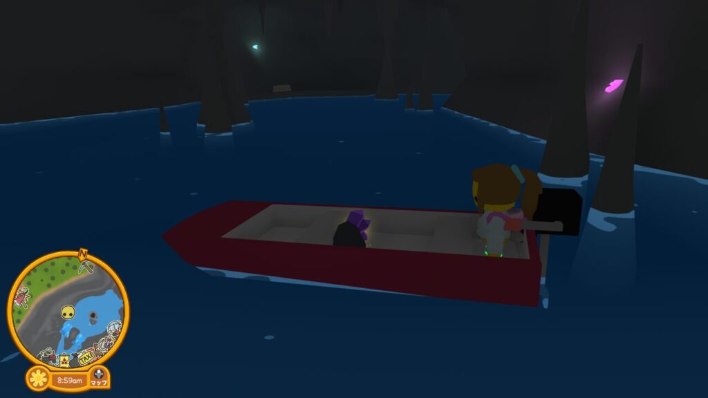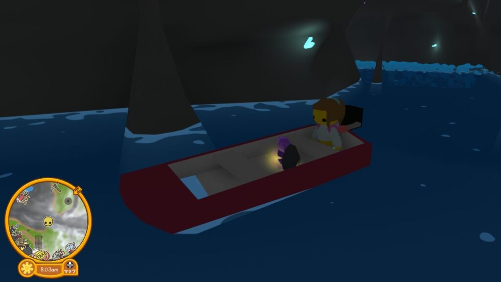 さて、入ってきた穴には登れないので、アメジストのジオードを発掘した先に泊めてあるボートに乗って脱出しましょう。