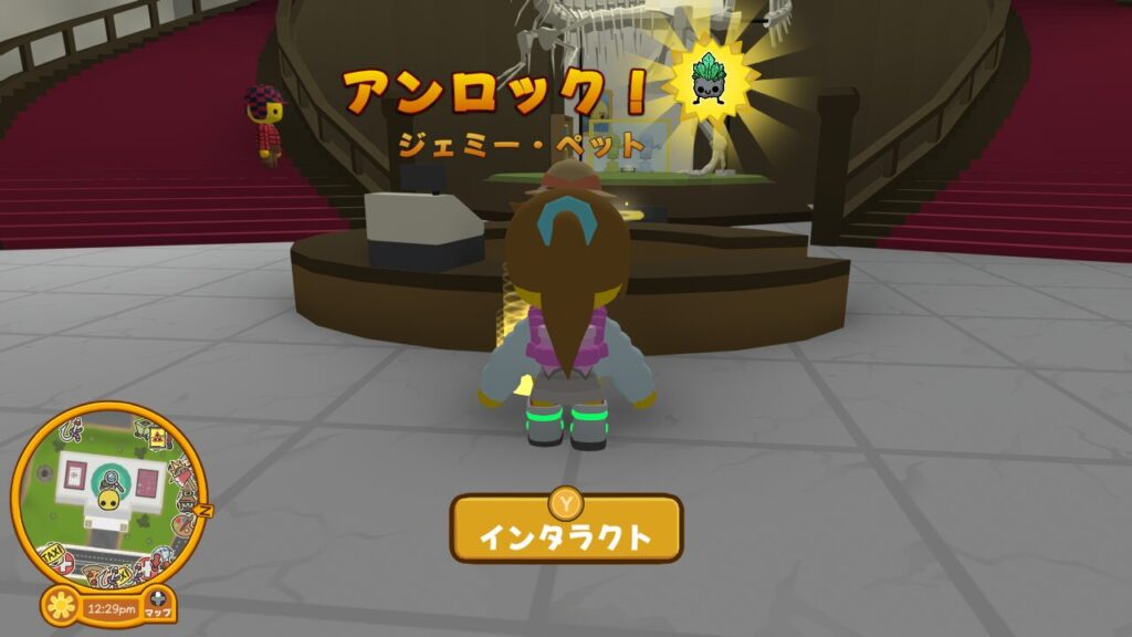 4つのクリスタル(遺物)を博物館に寄贈しコレクションを完成させると、直後にジェミーペットがアンロックされます。