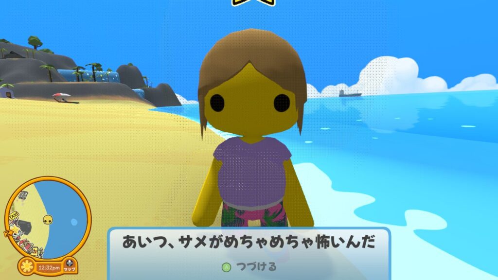 ↑まずはサメに変身するための衣装一式を購入しにパラダイス島の洋服屋さんへ向かいます。