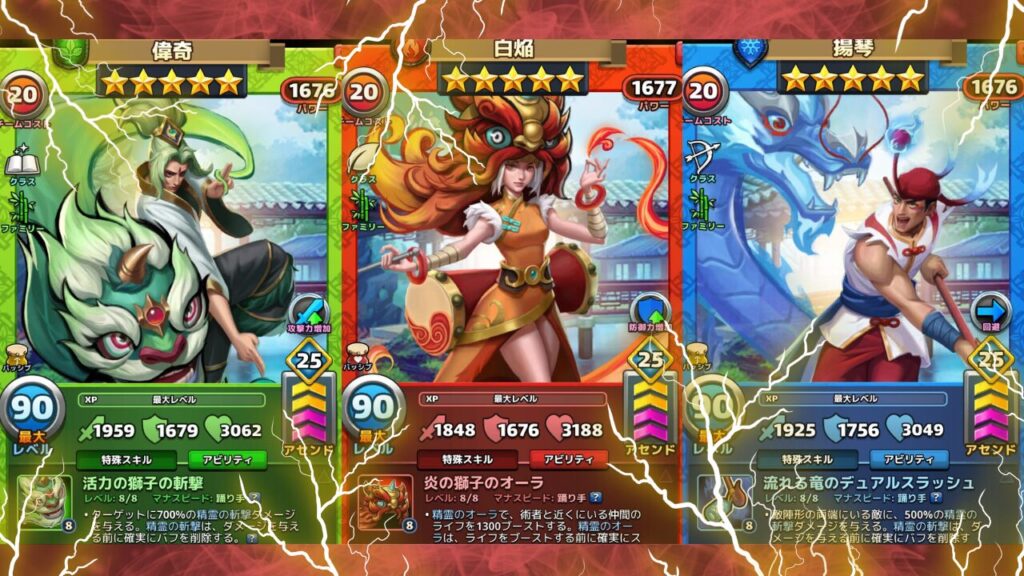 今回紹介した3体の星5英雄、偉奇、白焔、揚琴は、3体共に以下のファミリーに所属する英雄です。