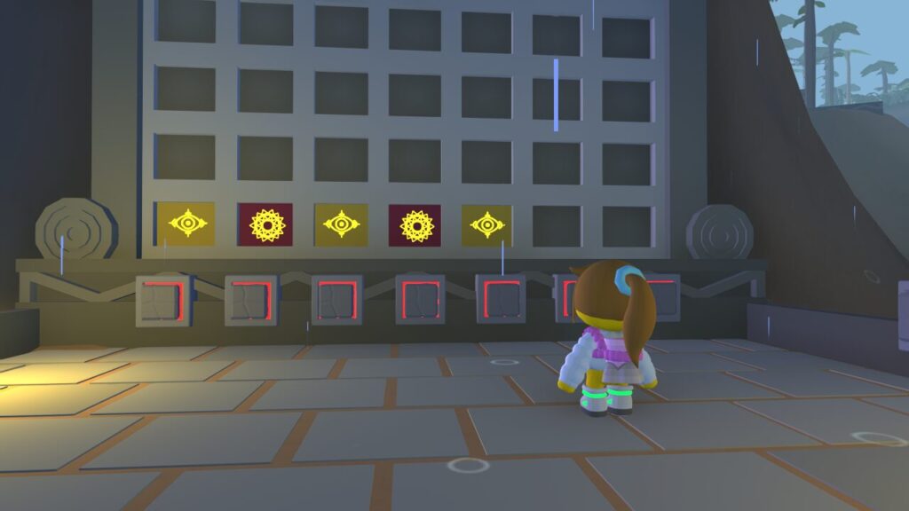 スイッチを押すと二種類の絵柄のブロックが出現し、パズルゲームのような雰囲気をさらに醸し出すんですが…、今のところコレが何なのか、なんのために存在しているのかの解明には至っておりません…。