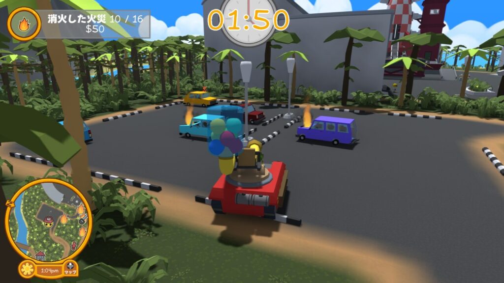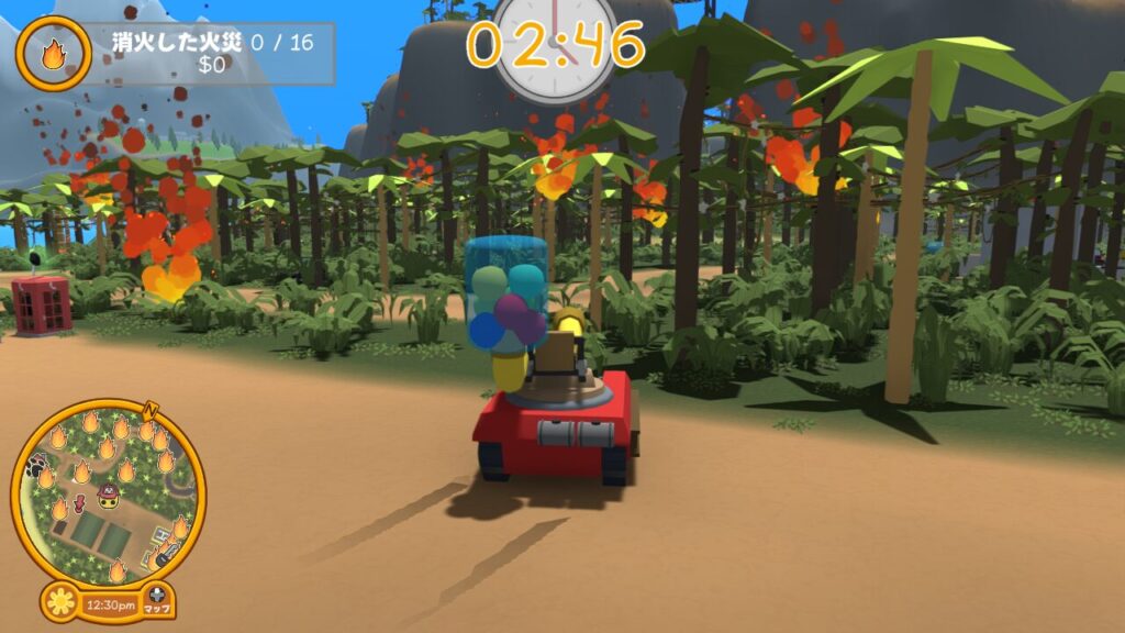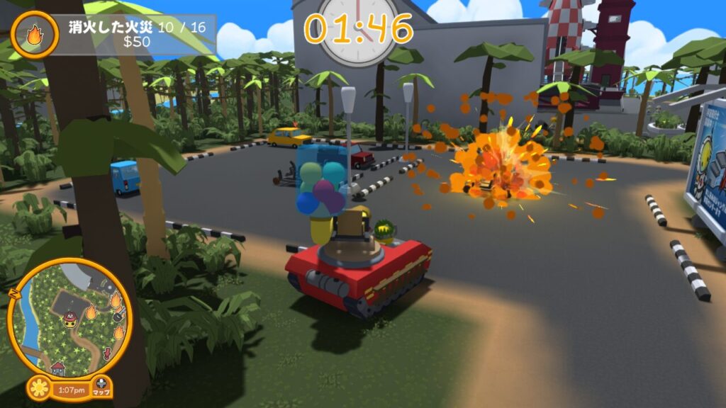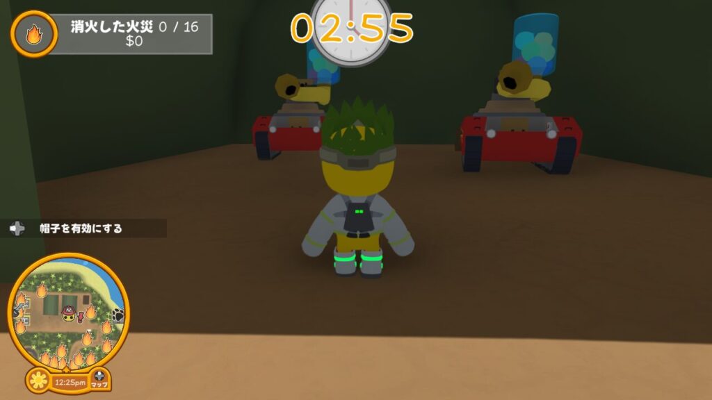 制限時間内に計16個の炎ターゲットに水風船を当て、すべての炎を消火できればお仕事クリアとなります。