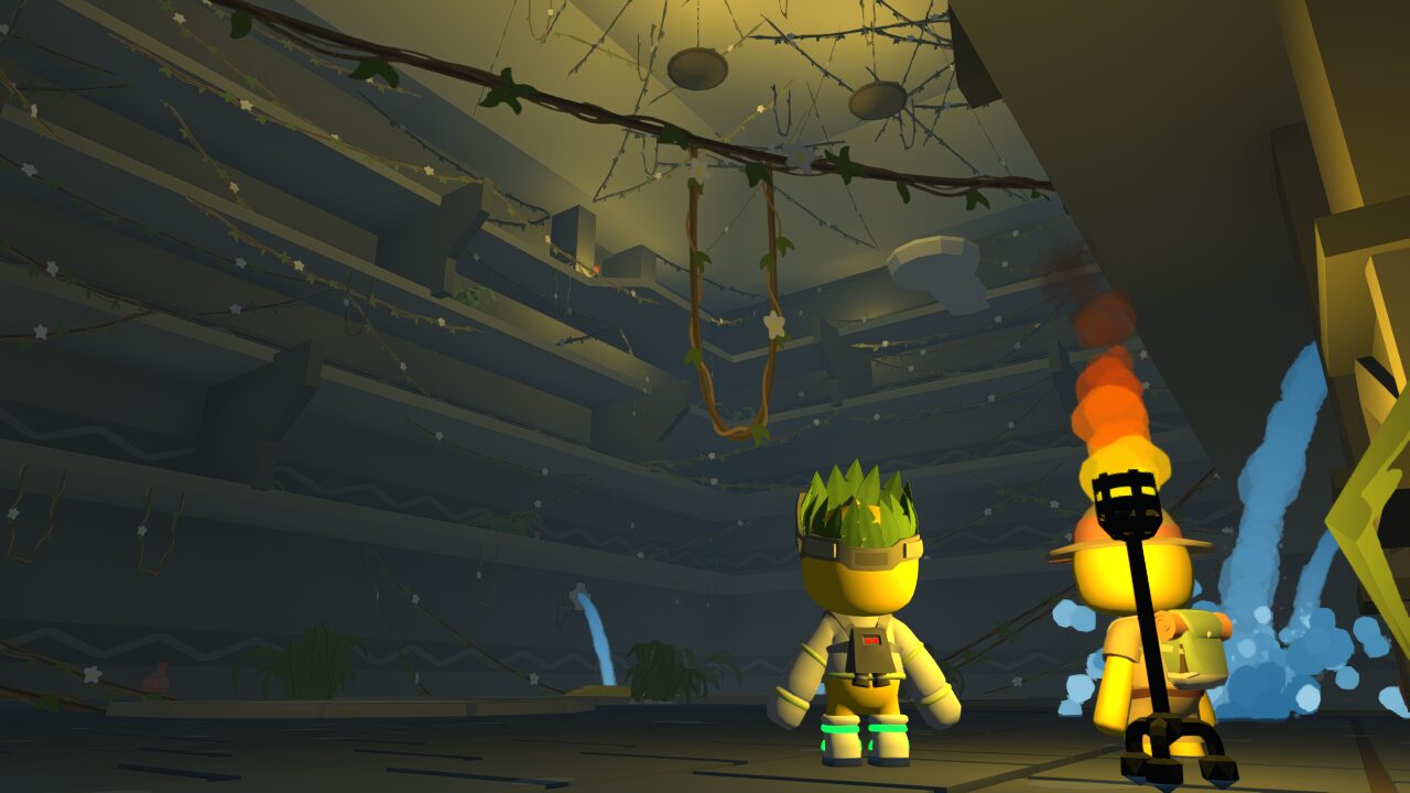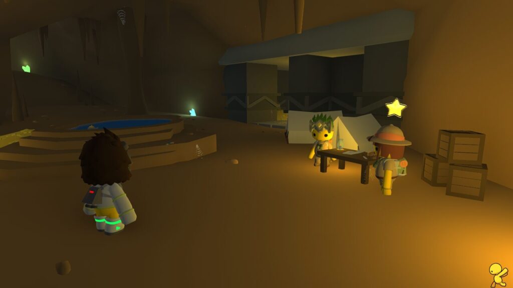 ↑古代のミステリーのタスクは、ジャングル島のこの場所から開始する事ができます。考古学者たちが何人かいる建物内です。