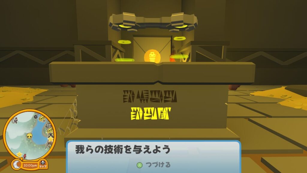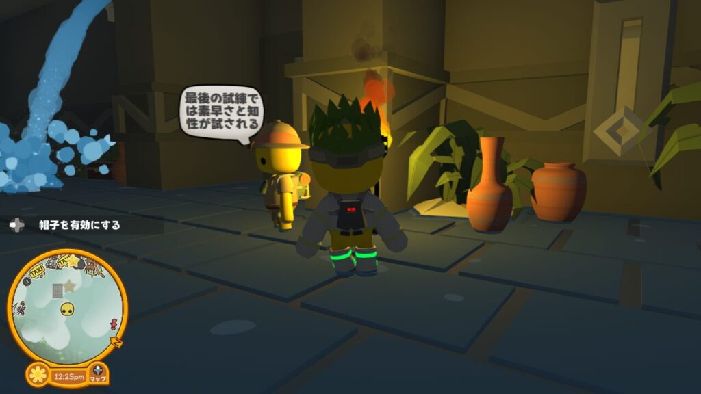 足場が下がる前に次のトーテムに帽子の力を注ぎ、次の足場をせり上げ飛び移りましょう。