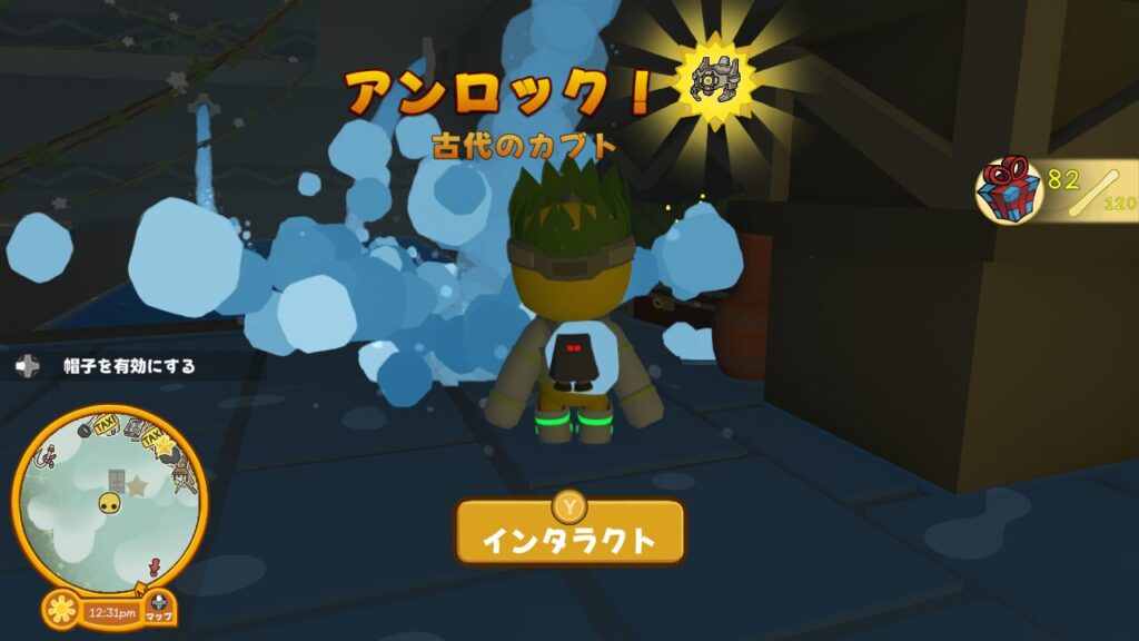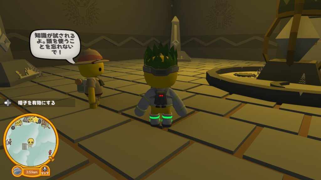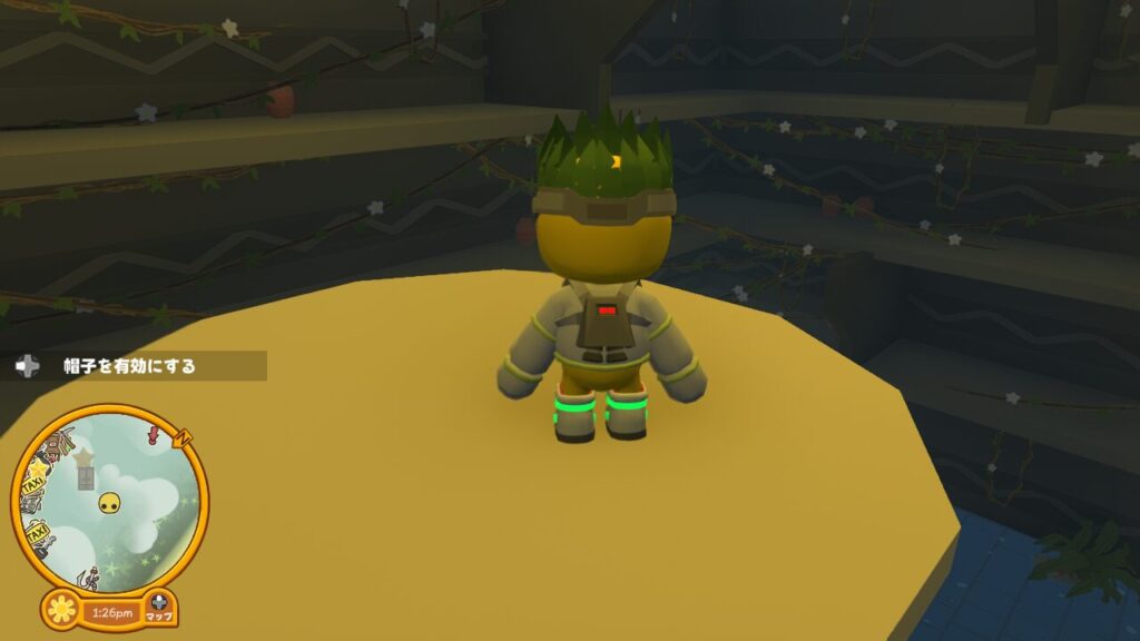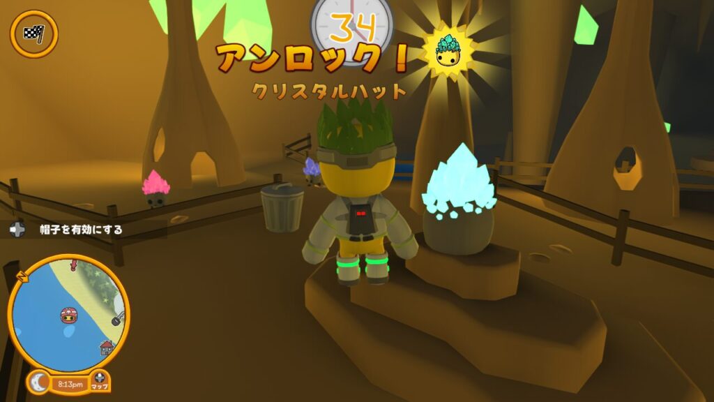 ↑中央のオブジェのようなクリスタルにインタラクトしたら、【クリスタルハット】というコスチュームがアンロックされました。