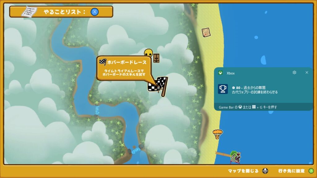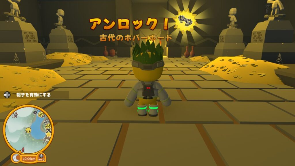 というわけで無事ホバーレースをクリアしたので、【古代のホバーボード】という隠し乗り物がアンロックされました。