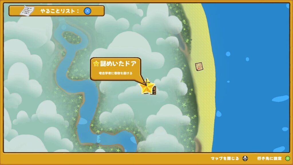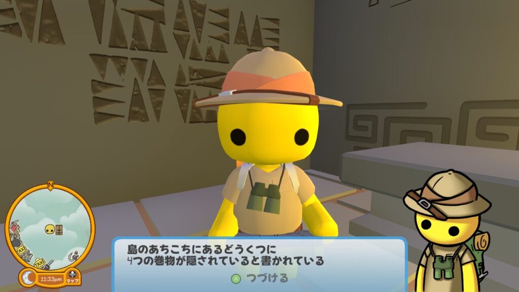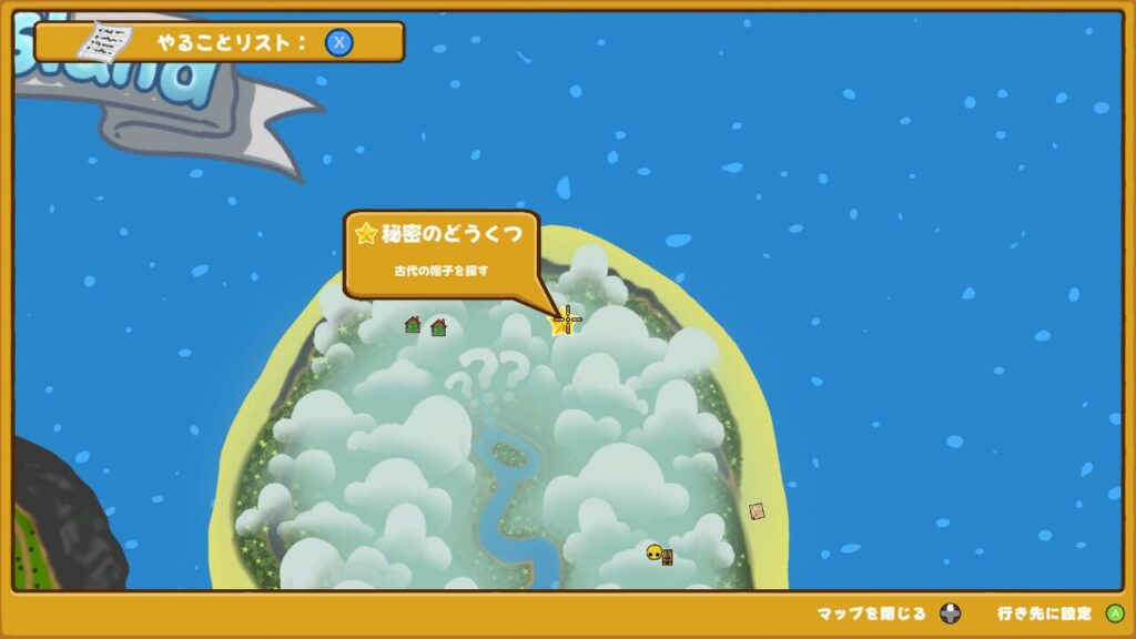 ↑どうやらまずはウォブリーアイランドのあちこちにある洞窟をめぐり、4つの巻物を手に入れる必要があるみたいです。