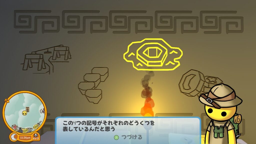 4つのトーテムには日の出、日中(太陽)、日没、夜(月)を表す絵が描かれているので、順番通りに起動すればOKです。