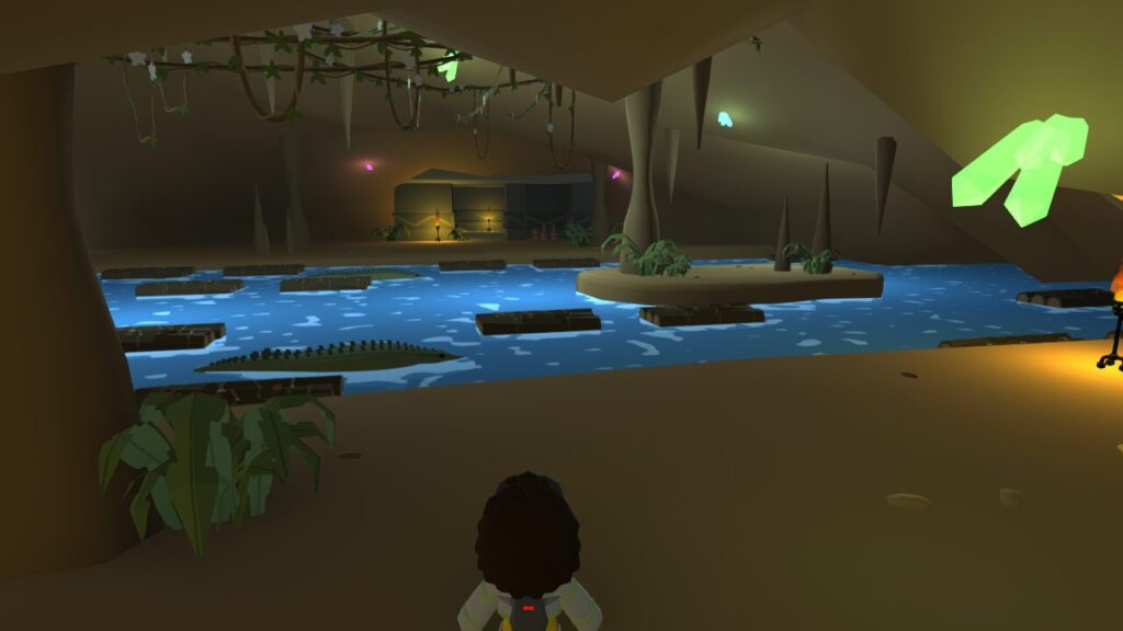 洞窟を進むとなんと伝説の名作レトロゲーム【フロッガー】風の間に辿り着きました!(笑)