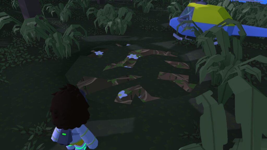 巨大ウォブリーの石像の近くにヘリコプターを着陸させてみたら、ちょうど真横に草で隠された穴みたいな物を見つけました。