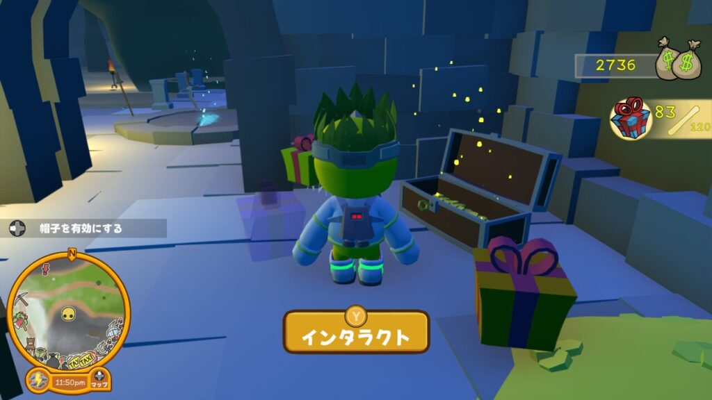 そして部屋の中にはまずプレゼントボックスが3つ入った宝箱が。
