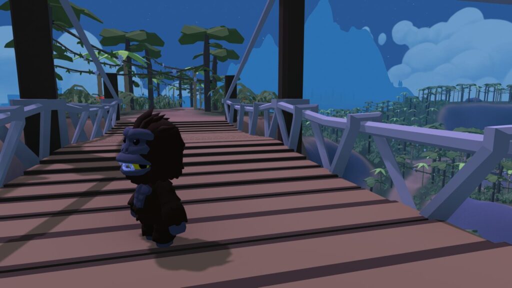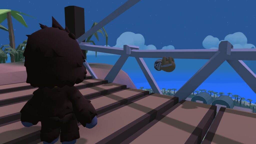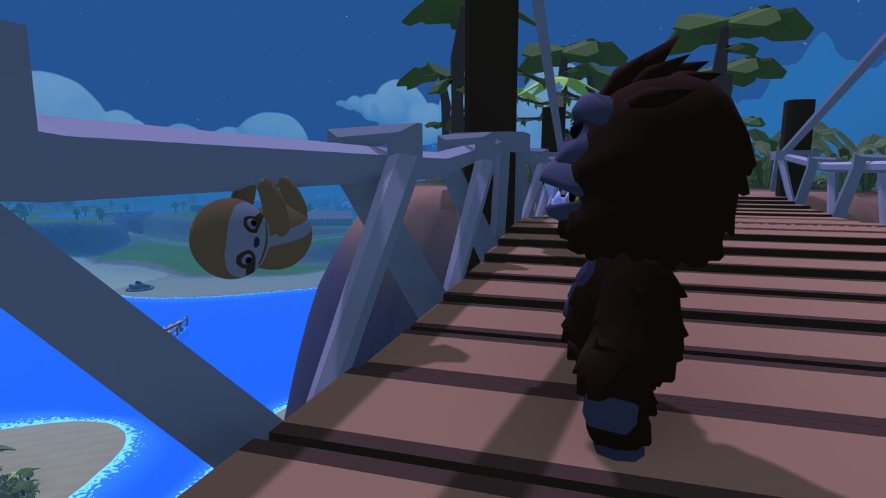 ↑ナマケモノハットは、ジャングル島のこの橋でアンロックできます。