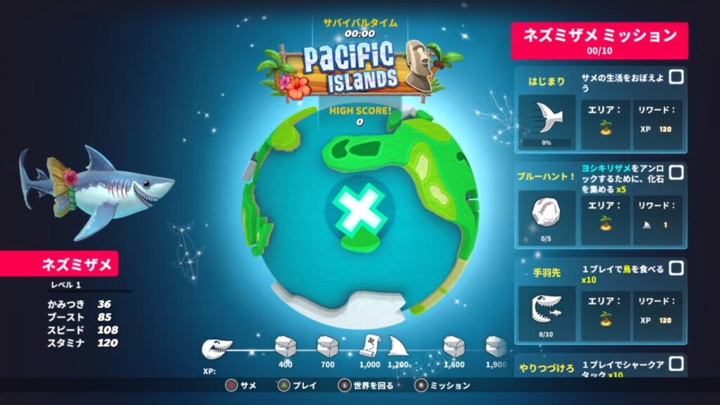 お気に入りのサメを見つけたら、そのサメでたくさんステージに挑戦して、強力なサメに育てましょう!