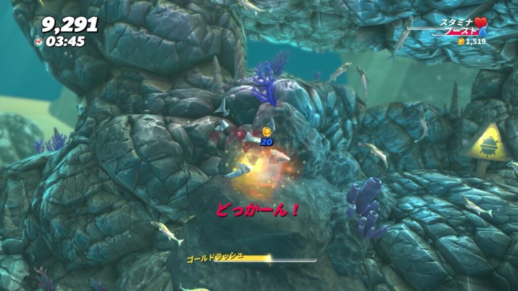 特に爆弾系はダメージが高く、不用意に触れれば容赦なくサメの身体をバラバラに破壊する。
