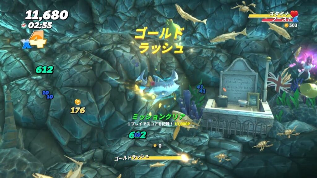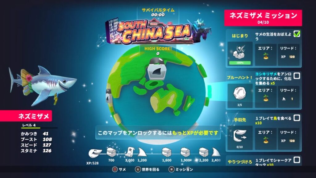 さらに新しい鮫がアンロックされる事もあり、毎回飽きずにステージに挑む事ができる。
