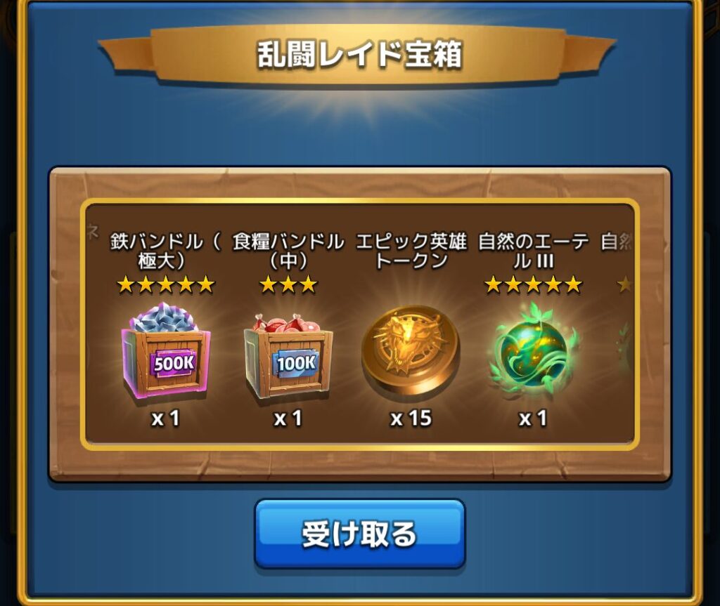前回のバレンタインの乱闘が終わってまだ10日ほどしか経っていないのですが、もう次の乱闘レイドが始まって驚いていますが、最速でクリアして宝箱開けてきましたよ~!