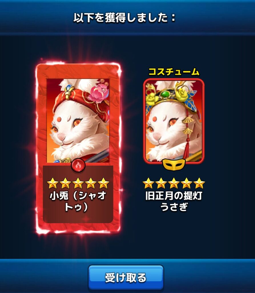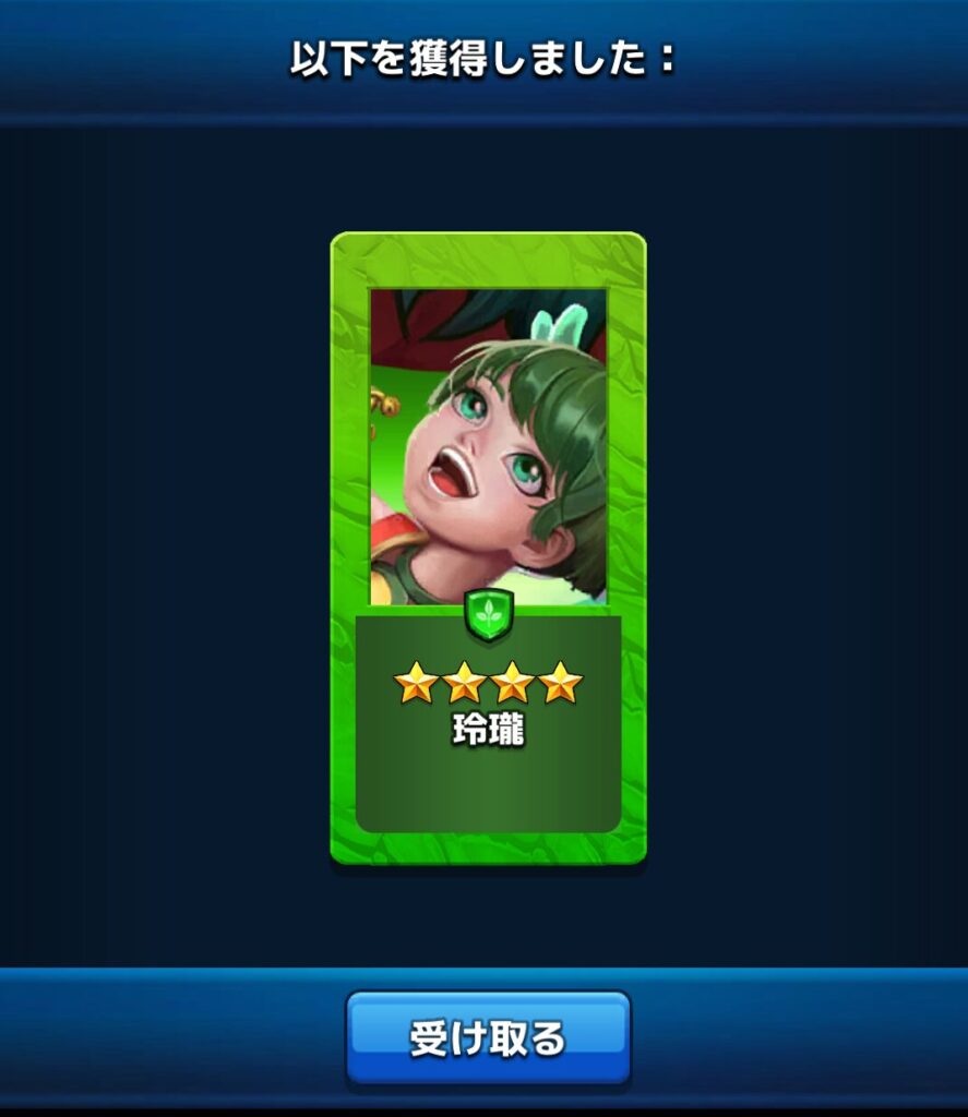 うーーーーーーーん、なんとか1体幸運の踊り手のファミリーの英雄が出ましたが、星4英雄の玲瓏でした…。