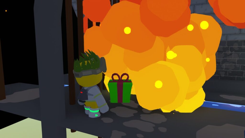 出口付近のひときわ大きな炎の中に飛び込んでみると、中にプレゼントボックスが隠されていました。