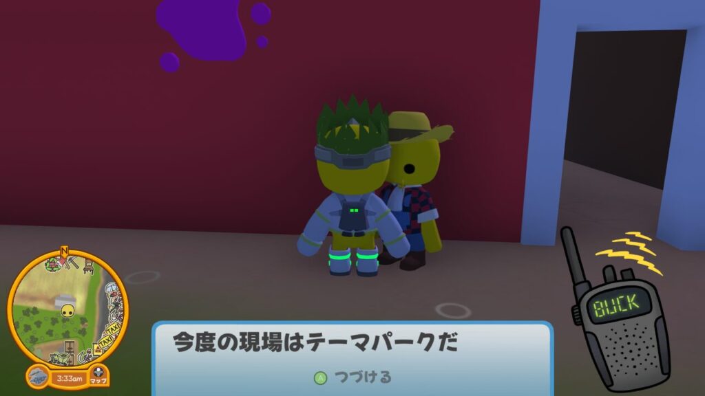 するとバック刑事から、また同じ謎の物質(ゼリー)に関わる事件の通報があったと無線が入りますので、次はテーマパークに向いましょう。