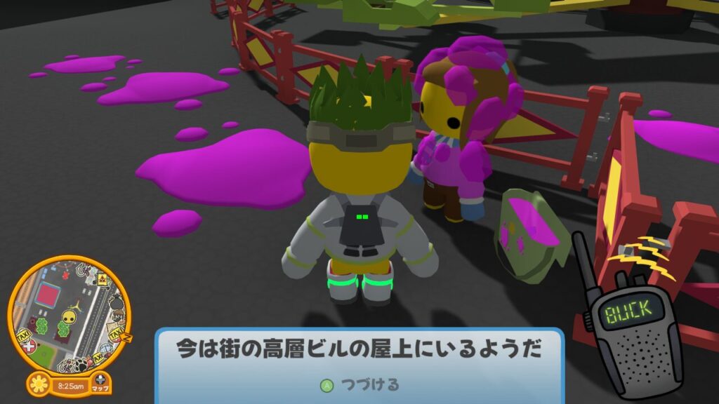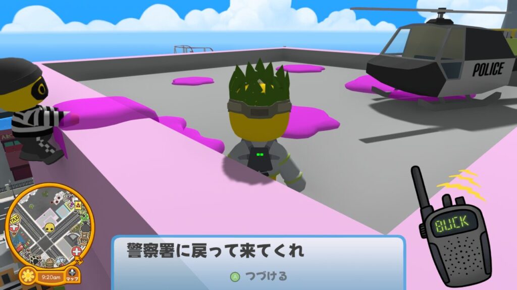 そしてついにバック刑事はゼリーマンの目撃情報を入手したようです。どうやら街の高層ビルの屋上にいるそうなので、ヘリコプターを使って向かいましょう。
