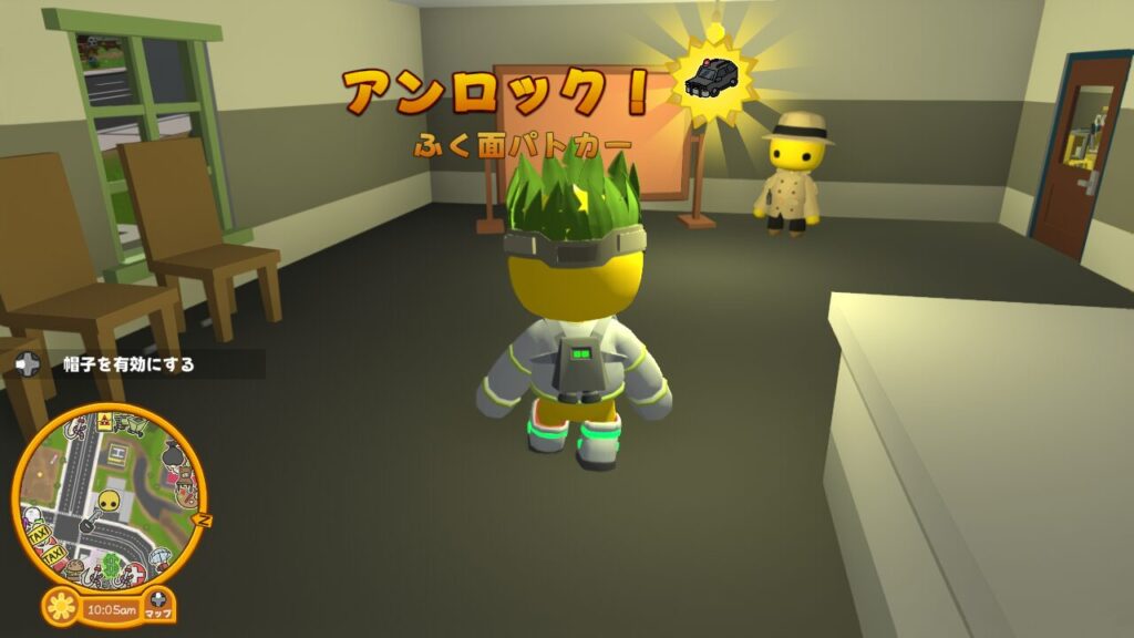 そして【ふく面パトカー】という乗り物と、【刑事の服】というコスチュームが報酬としてアンロックされました。