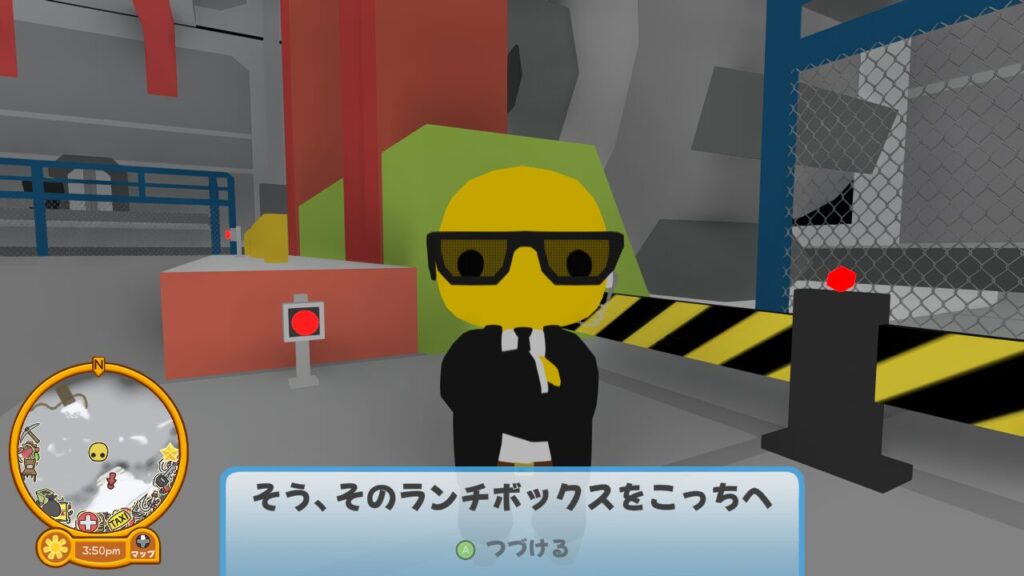 ↑無事施設に到着すると、黒服ウォブリーがツールボックスを引き取ってくれる。