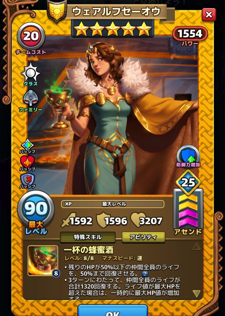 実際レイドなどでセンターに置かれるとけっこう厄介です。他の英雄に比べてややステータスが低めなのだけが気になりますが…。