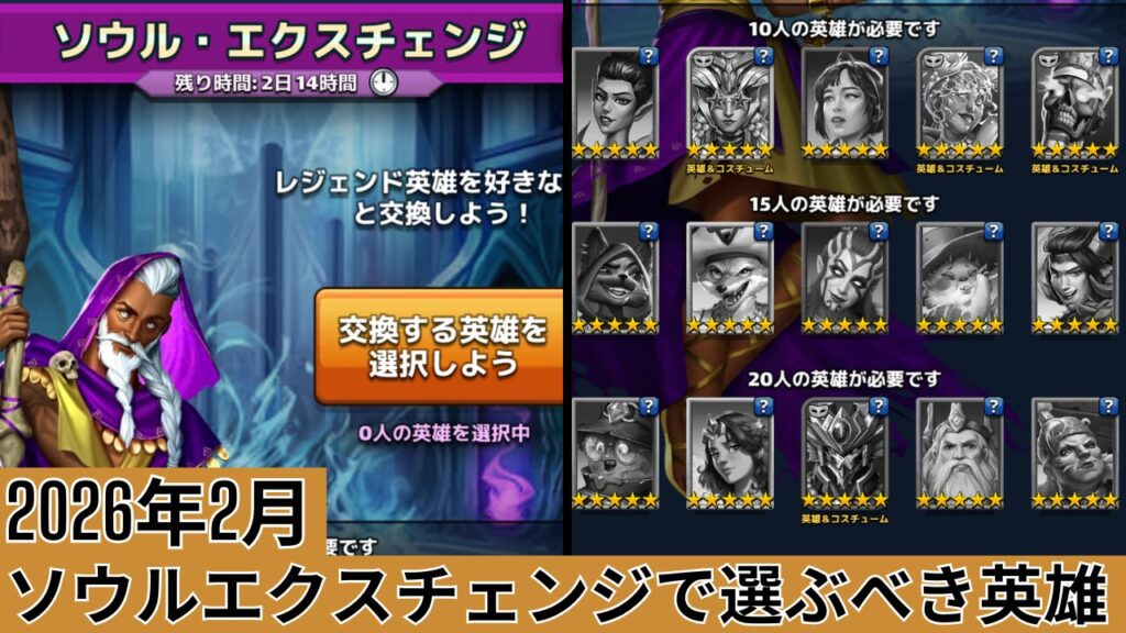 ↑こちらが今回のソウルエクスチェンジで交換できる英雄リストになります。