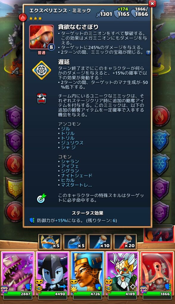 ミミックファミリーの英雄たちは【ミミックの戦利品】という特殊なパッシブスキルを各自持っている。