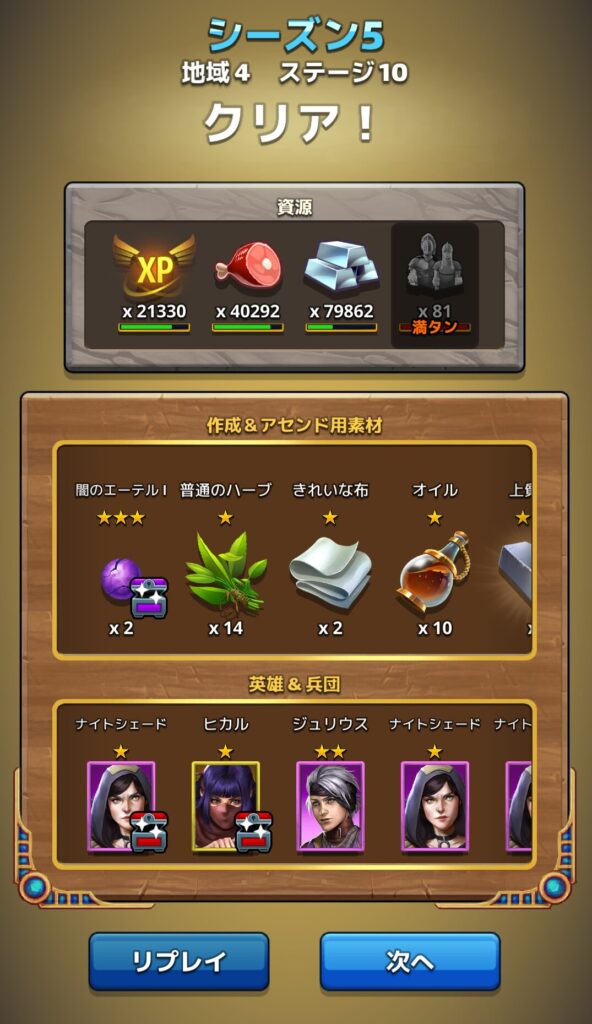 ↑マップステージを戦利品チケットにて9回ほどスキップしてみましたが、追加エーテルも追加英雄も獲得できているので、どうやら同時に発動するようです。