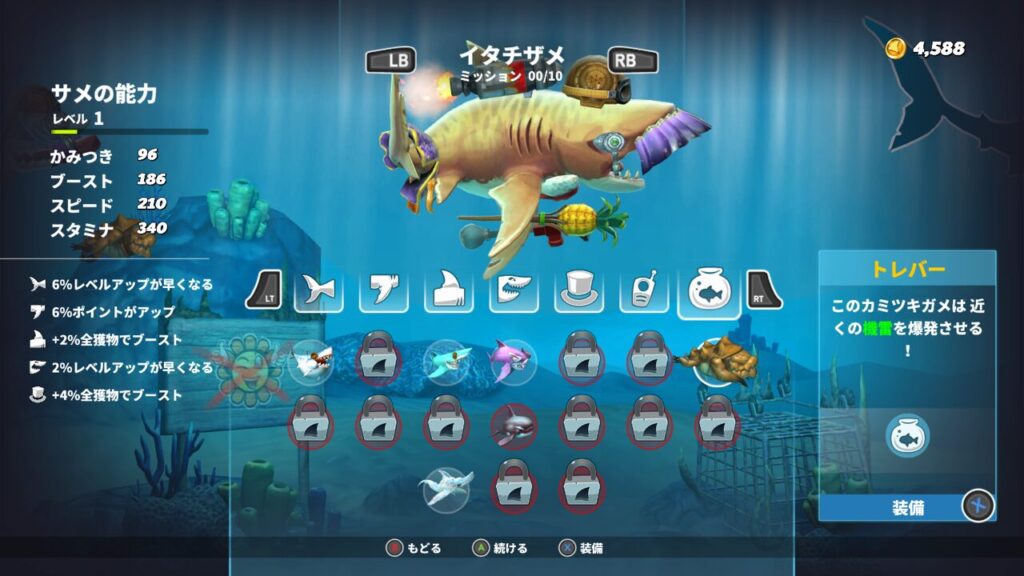 今回使うサメとレベルはこちら