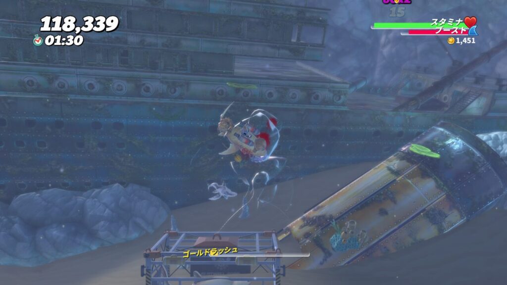 しかもステージ開始直後に行けば泣き叫ぶジンベエザメの周りにはほとんど邪魔してくる敵キャラもいないため、ほぼタイマン状態となります。