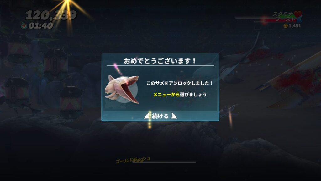 泣き叫ぶジンベエザメのクリア報酬