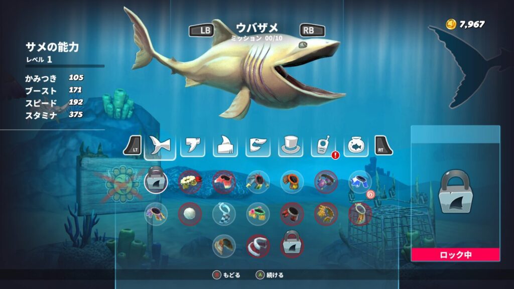 泣き叫ぶジンベエザメを討伐しケージを壊すと、ウバザメというキャラクターがアンロックされます。