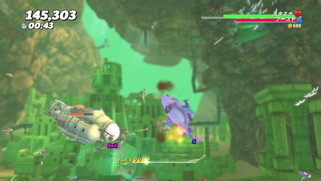 ゴールドラッシュ状態なら無敵ですので、この状態を上手く活用してスーパー潜水艦を沈めましょう。