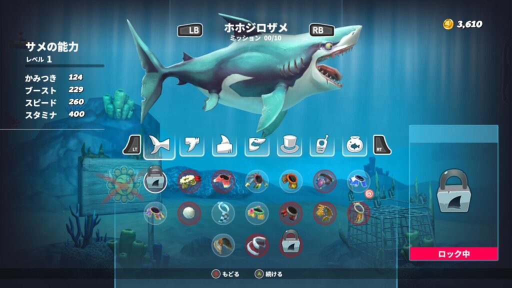 今回使うサメとレベルはこちら