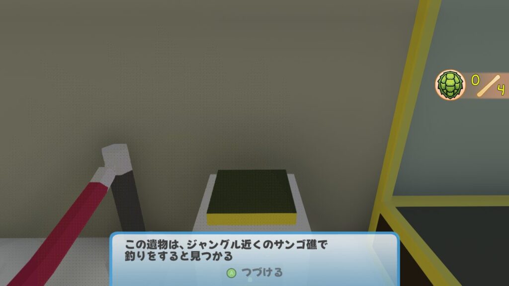 ↑博物館でのヒントを見ると、「この遺物は、ジャングル近くのサンゴ礁で釣りをすると見つかる」だそうです…。