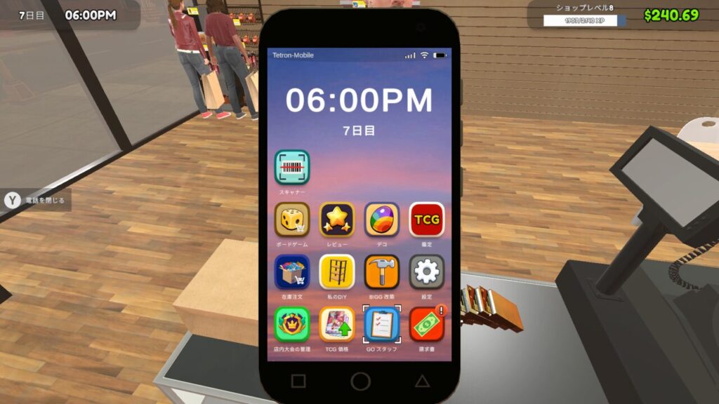 TCGカードショップシミュレーターには携帯電話画面から行う事ができる【GOスタッフ】という機能があります。