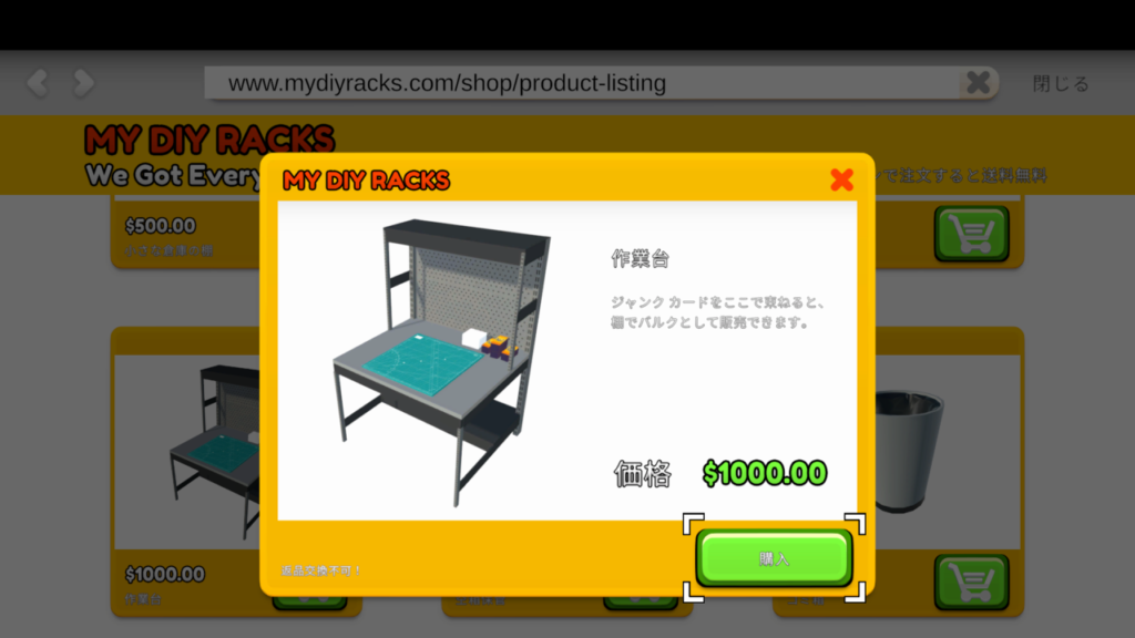 TCGカードショップシミュレーターにはMY DIY RACKSから購入できる【作業台】という便利な設備があります。