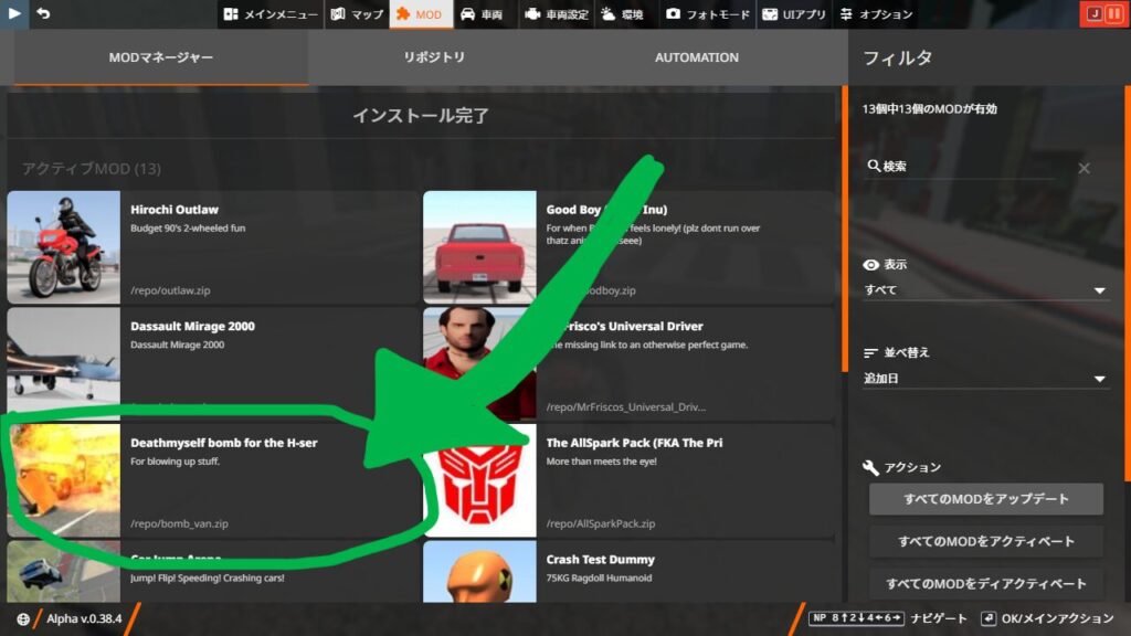 というのも説明が全て英語なのと、MODの説明文がやや簡素なのです。