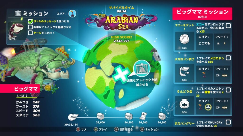 という事で今回は、ハングリーシャークワールドのアラビア海レスキューミッションである【凶悪なアトミックを絶滅させる】を攻略していきたいと思います。