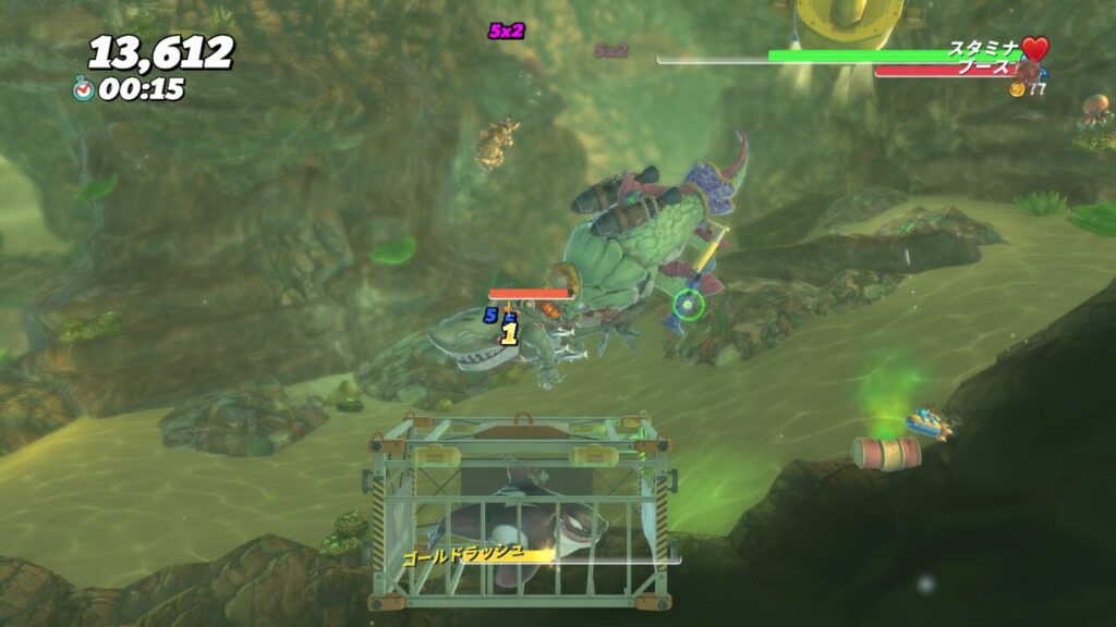 同じエリアにサンシャイン潜水艦などもいますが、なにせ本当にステージ開始直後に戦えるため、何がいたところでほとんどダメージもなく倒せてしまいます(笑)