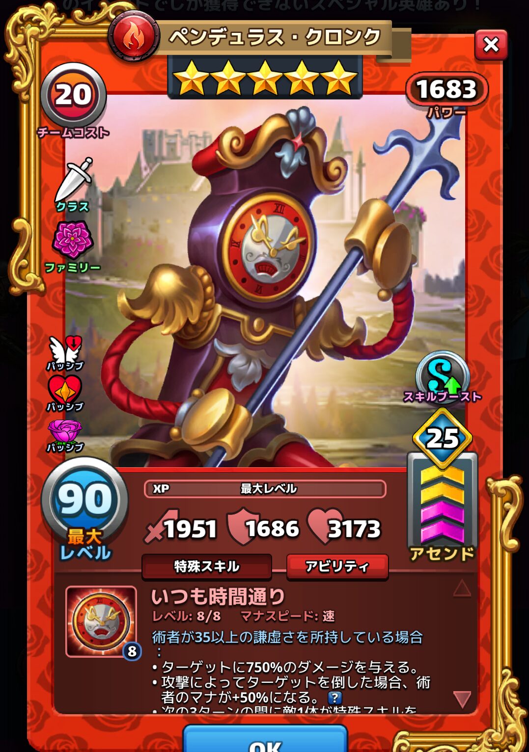 《エンパズ攻略》星5英雄データリスト|ペンデュラス・クロンク【empires & puzzles】