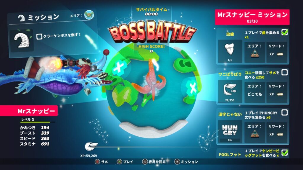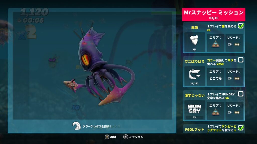 という事で今回は、ハングリーシャークワールドのボスバトルマップのレスキューミッションである【クラーケンボスを倒す!】を攻略していきたいと思います。
