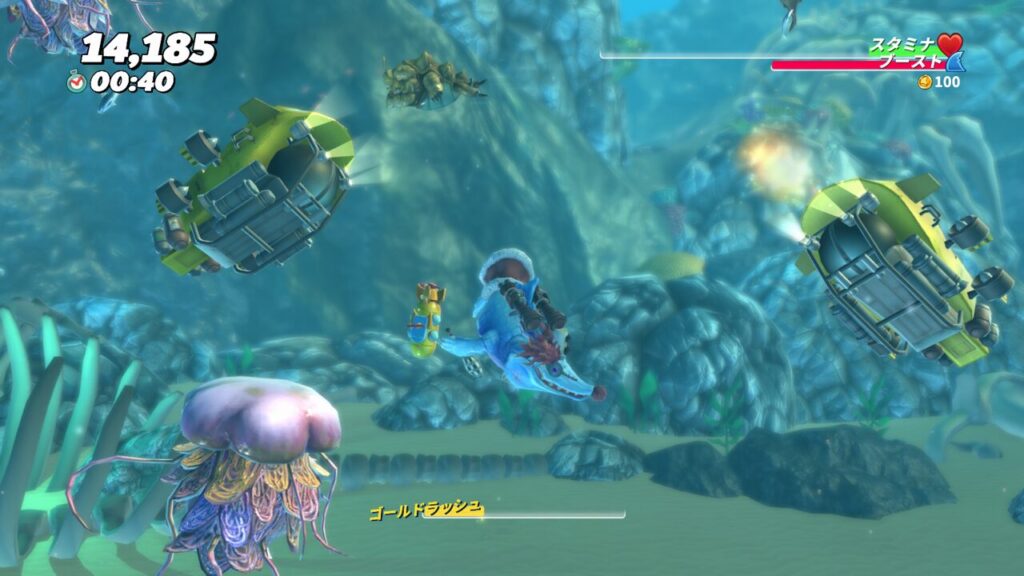 というのもクラーケンステージには前項で紹介したようなスーパー潜水艦や大型の毒クラゲがこれでもかというほど配置されているため、海底に行くまでにも、そしてクラーケンの元に戻るまでにも、かなりのダメージを被ってしまいます。
